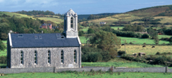 It stands on a large site, surrounded by rolling Mayo hills, near the Atlantic Ocean. While little is recorded about its history, we do know that in 1901 the belltower was struck by lightning causing significant damage and precluding its use as a place of worship. The church languished, unused, for almost a hundred years. During this time what was left of the roof was removed for tax reasons, leaving little more than a shell, soon taken over by animals and vegetation.